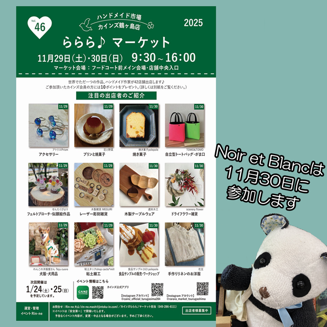 - 「Noir et Blanc」はハンドメイド系イベントで販売のほか、委託販売をして頂ける企業様、店舗様を探しています。